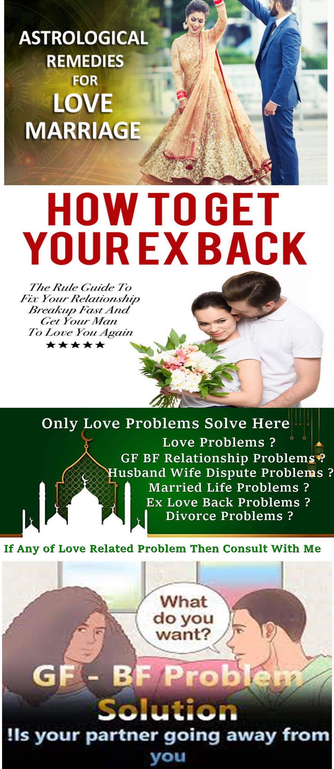 Specialist In : Love Problem Solution, Relationship Problem Solution, Breakup Problem Solution, Love Marriage Specialist, Get Your Love Back, Get Your Boyfriend Back, Get Your Girlfriend Back, Husband Wife Problem Solution, Dispute Problem Solution, Wazifa For Husband, Wazifa For Love, Intercaste Marriage Specialist, Etc Love Related Problems